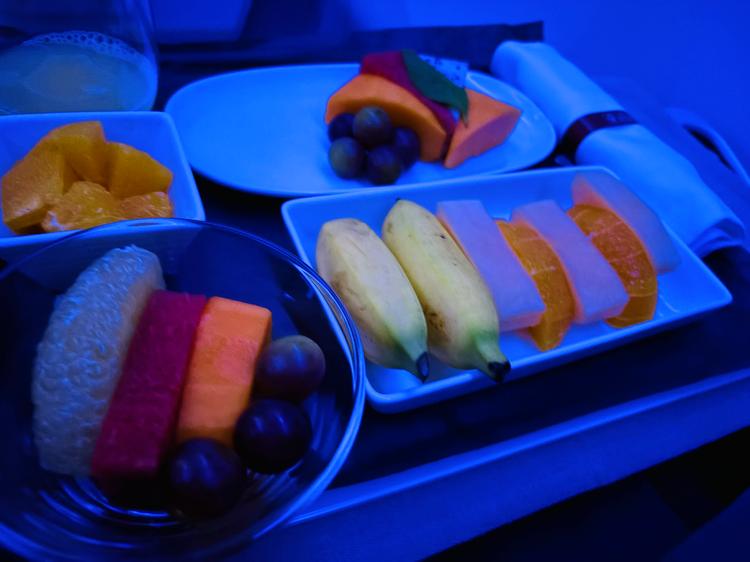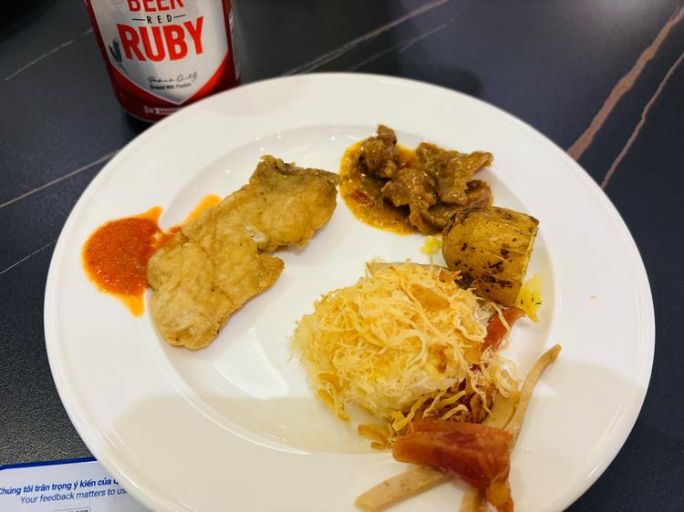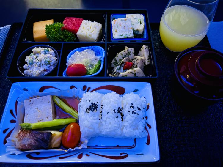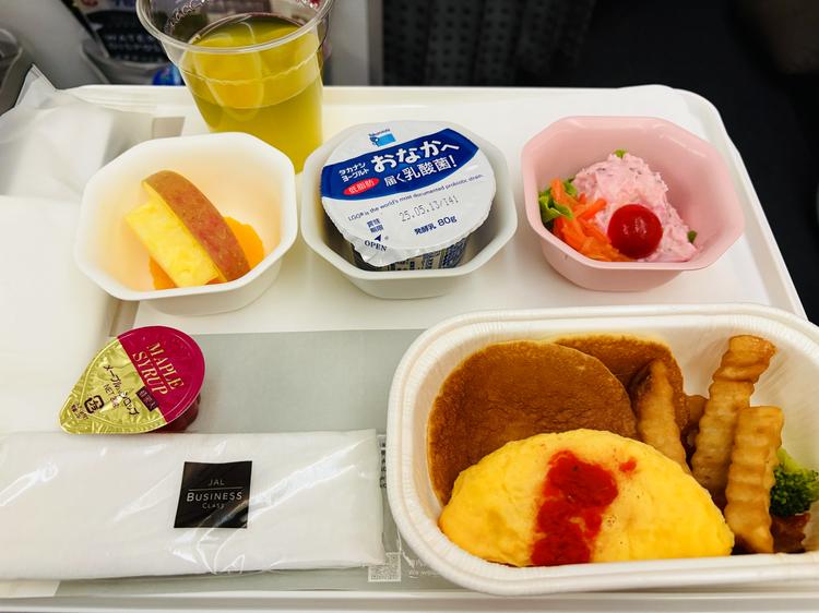到着の少し前に朝食として機内食が配給されました。見た目のイメージどおりのお味でした~( ̄ー ̄)