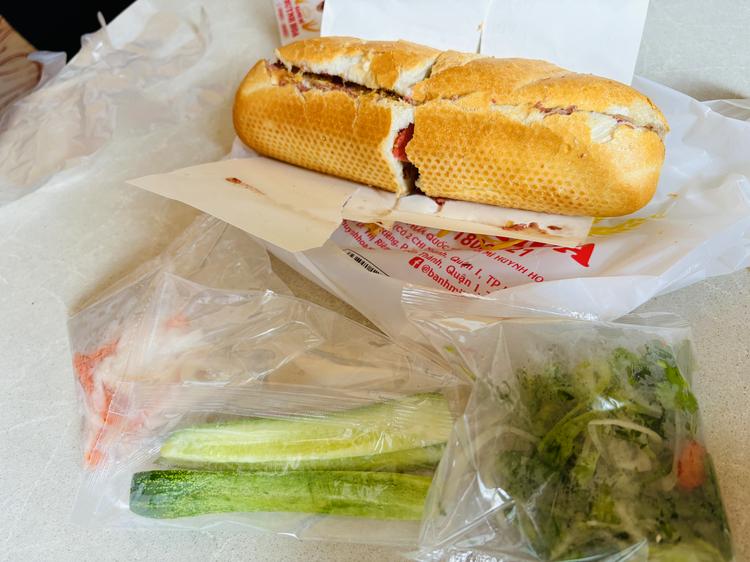 ホテル前でドライバーから受け取ったバインミー。なんて便利なんだ…