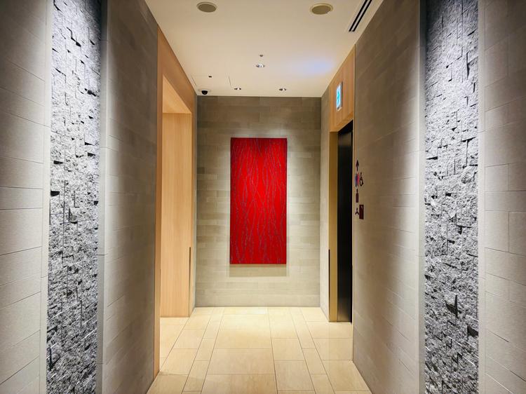 なんか売店の横にある専用のエレベーターで下の階へ行くと、ラウンジの入口にたどり着きます。