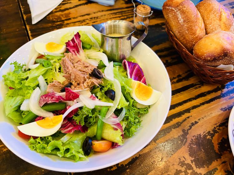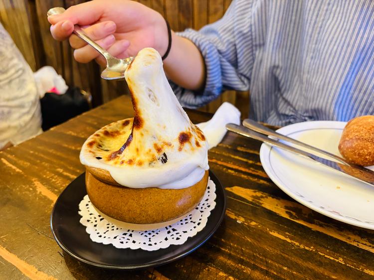 どの料理も美味しい!オニオングラタンスープのチーズがすごいし、どのお料理もボリュームがあったので、控えめに注文すれば良かった…
