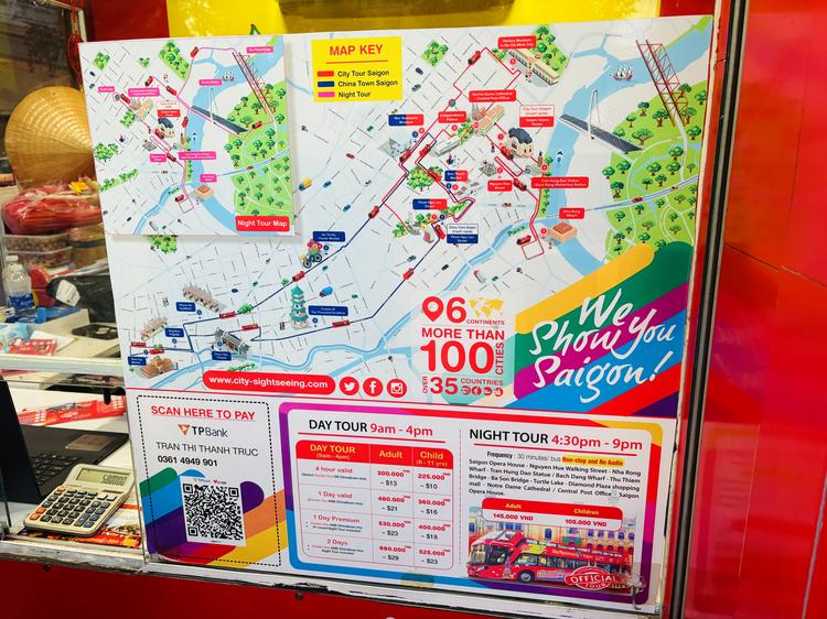 夜のホーチミンを手軽に楽しむなら二階建てのオープントップバスがおすすめ。とガイドブックに書いてあったので、行ってみました。