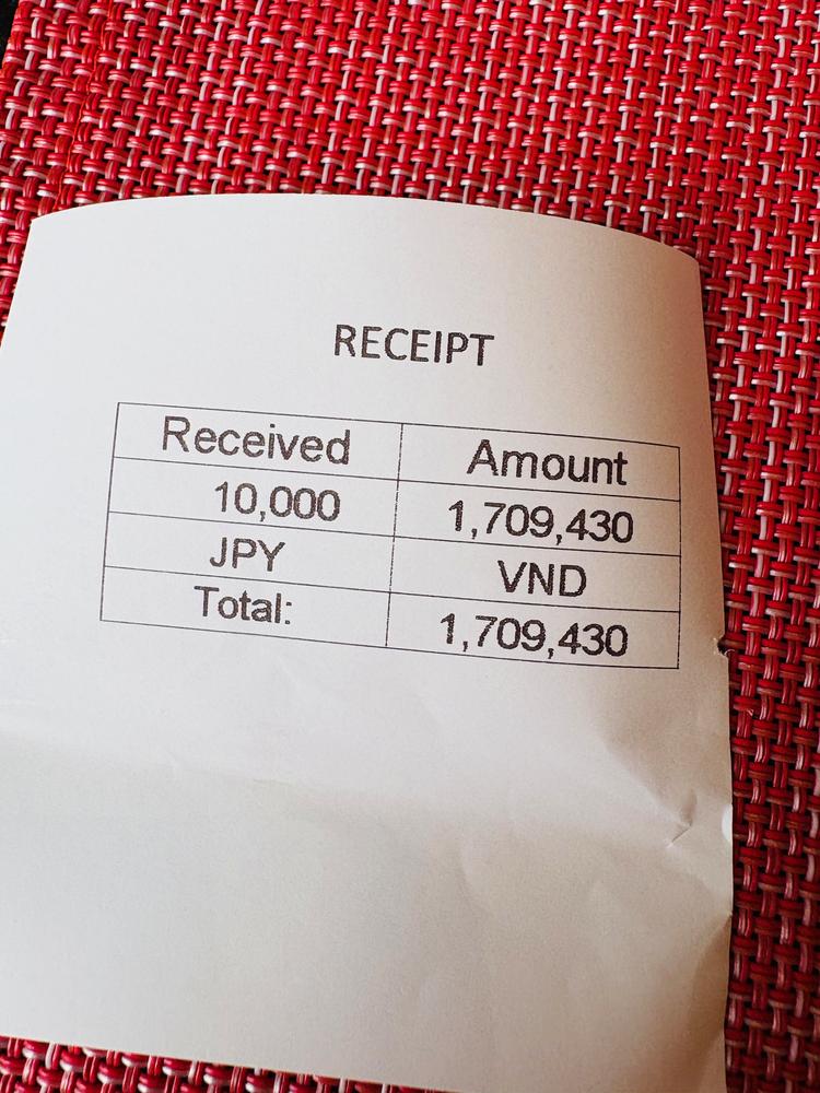 本当に170万9430ドン受け取ったのか確認したかったのですが、どの紙幣がいくらなのかもわからなかったので、とりあえず受け取って終了。