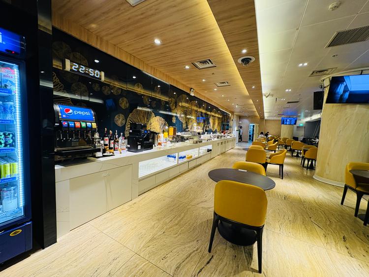 座席がWOWは、上がって右側エリアでウェルカムドリンクサービスがありました。有料でアルコール類も購入可能
