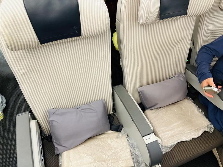 座席の配列が2-3-2だったので、妻と娘が窓際の2席。