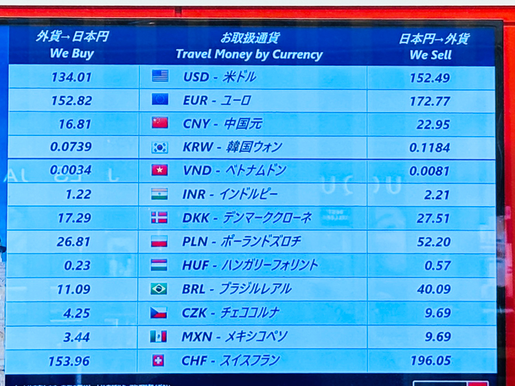 左が羽田空港で両替する場合のレート「1ドン=0.0081円」