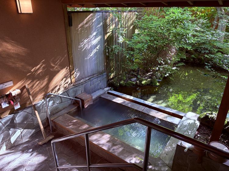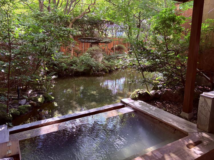 月庭だけの白濁した第四源泉の露天風呂に浸かり、源泉かけ流しの湯を好きなだけ堪能できてとても贅沢な滞在でした。