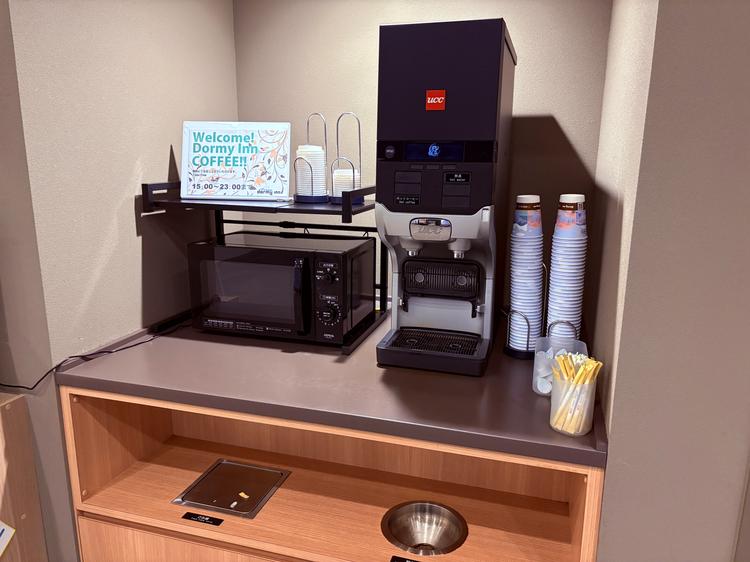 ロビー階には、ウェルカムドリンクのコーヒーや、すっきり爽快シートなどのサービスも充実。