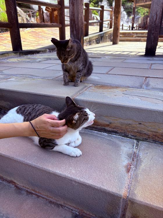 足湯の近くには、地域ねこちゃんたちが集まっていました(*'▽')